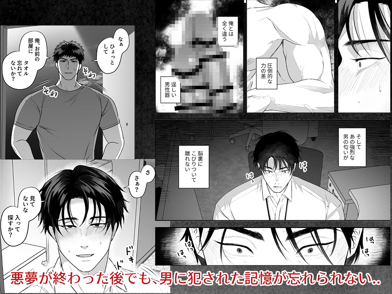- 毎日の残業と疲労で心も体もボロボロの狭間は、満員電車の中で思わずラガーマンの匂いを嗅いでしまい、勃起。誤解から男たちと取引を交わすことに…。複数プレイやフェラ、おしっこかけなどハードな淫行に巻き込まれてしまう。