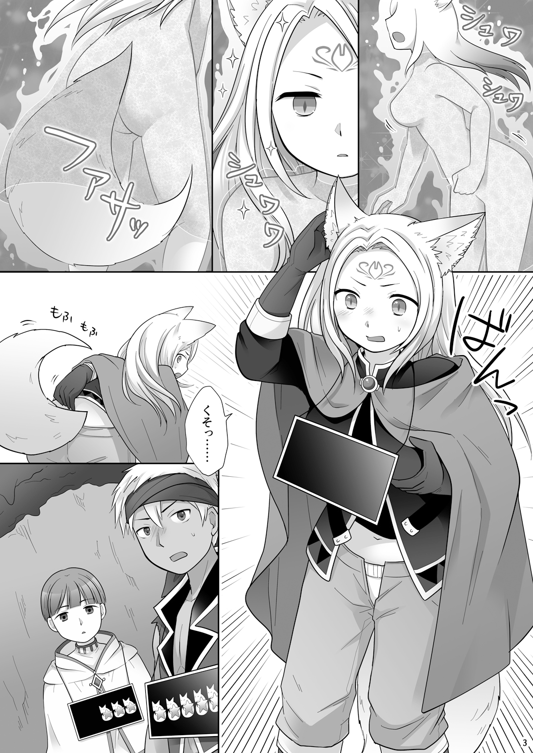 慣れない狐耳、慣れない尻尾、足元が見えづらい膨らんだ胸、落ち着かない股間周り。でもこれも一時的だ、男にも戻れるし何も心配する必要はないだろう……。