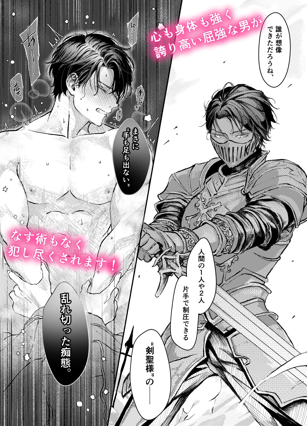 「プライドの高い社会的強者男性が、徹底的に責められながらも、堕ちる寸前で抗い続ける騎士」を描いています。