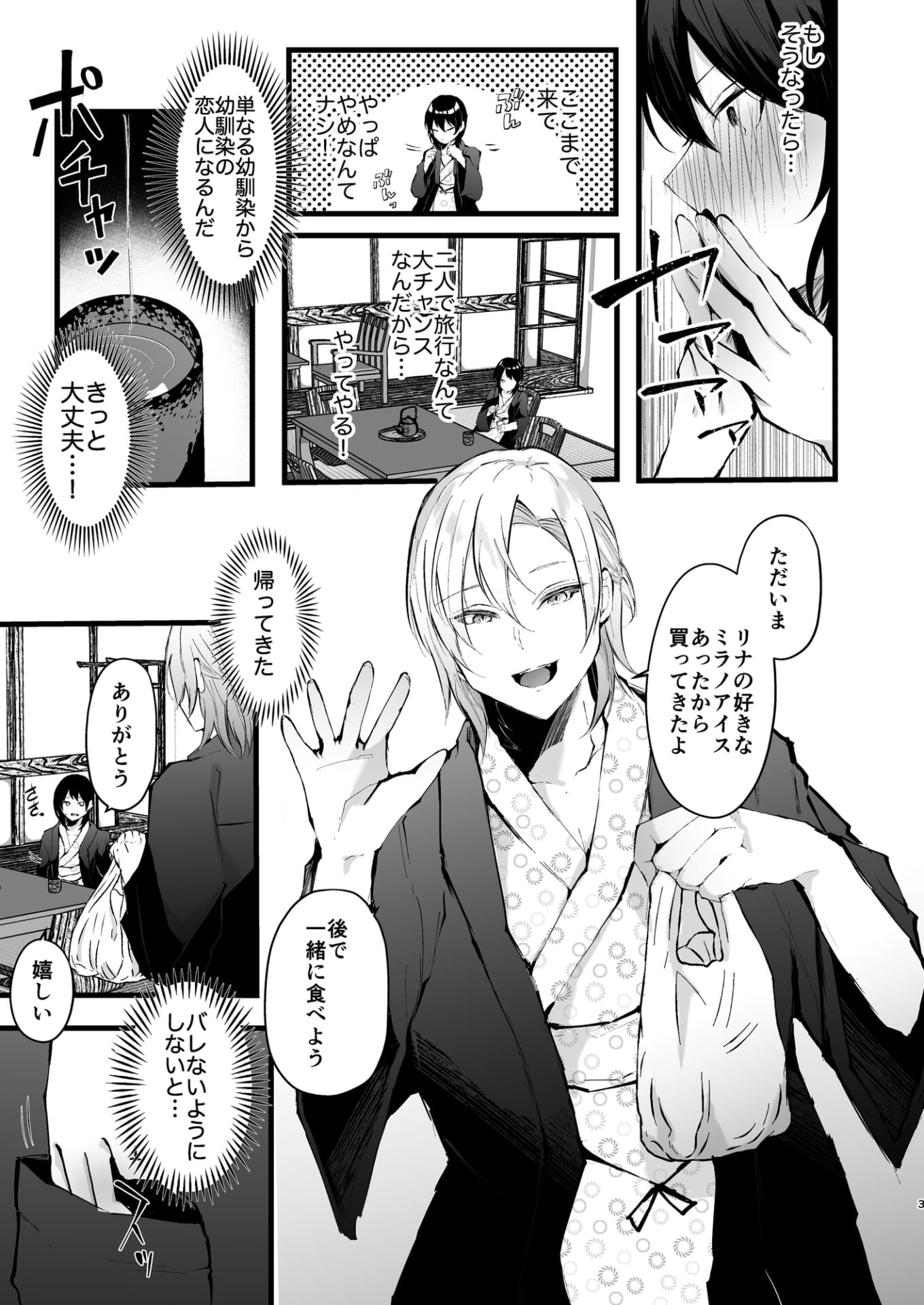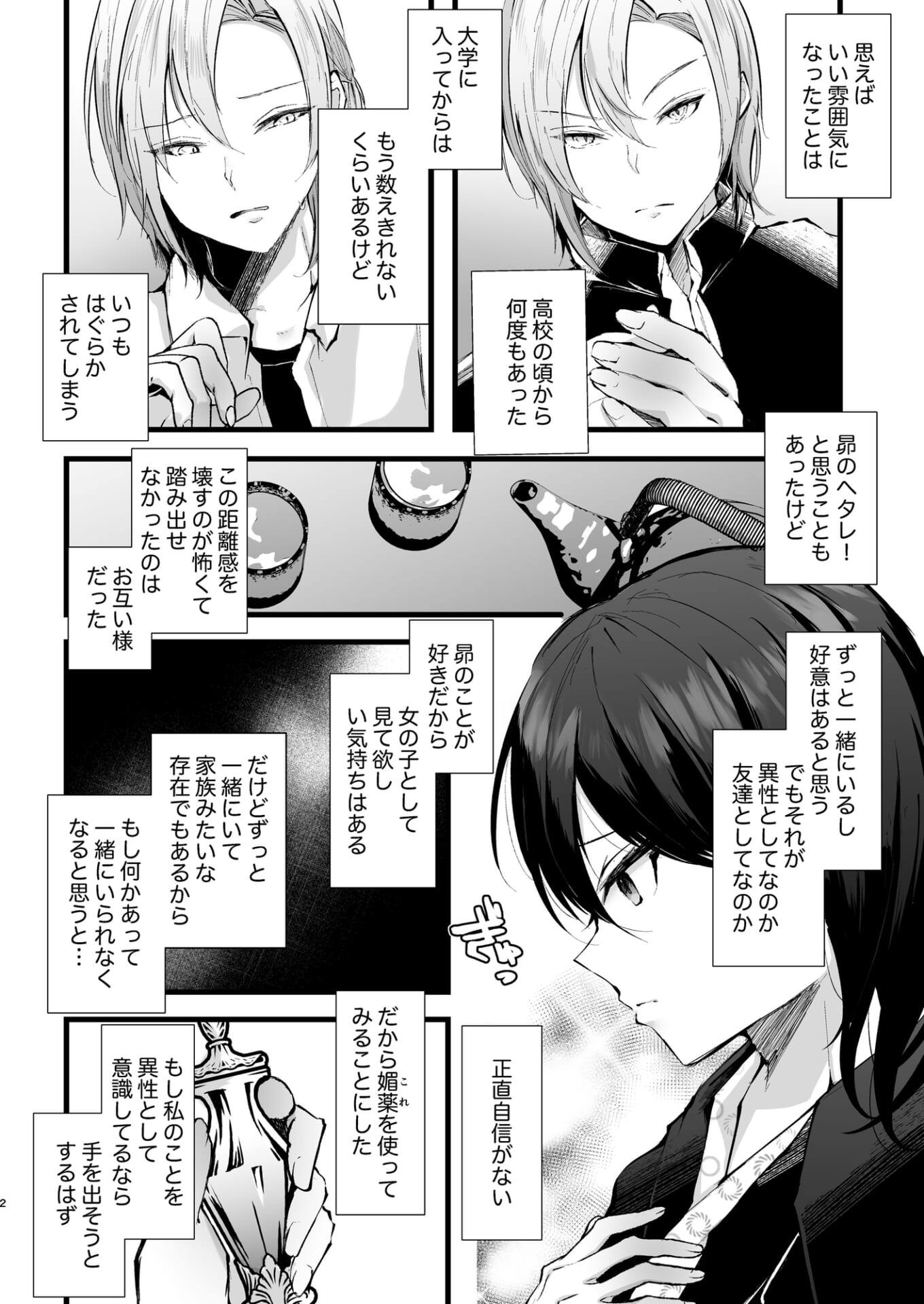 大学生の昴と里菜は小さい頃からの幼馴染。高校の頃から何度もいい雰囲気になったものの、お互いになかなか一歩が踏み出せず、幼馴染から関係性を変えられずにここまで来てしまった。 このままではいけない、と二人での旅行の際に里菜は媚薬を使うことを決意する。ちょっとした軽い惚れ薬のようなもののはずが、思わぬ手違いが起こってしまい...