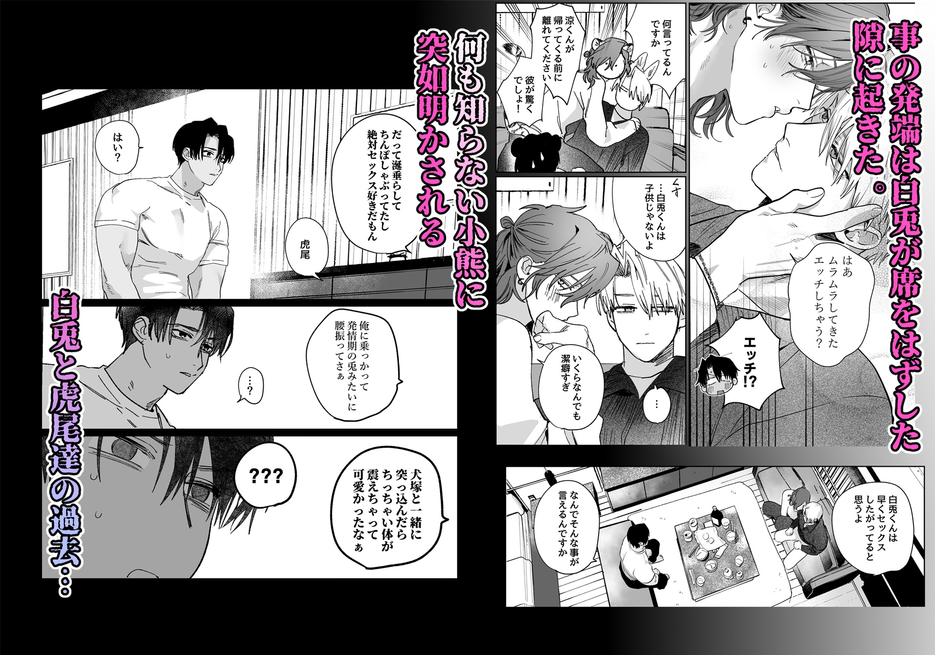 - 清く正しいカップル小熊×白兎&セフレ上がりの犬塚×虎尾、4人仲良くベッドイン♪