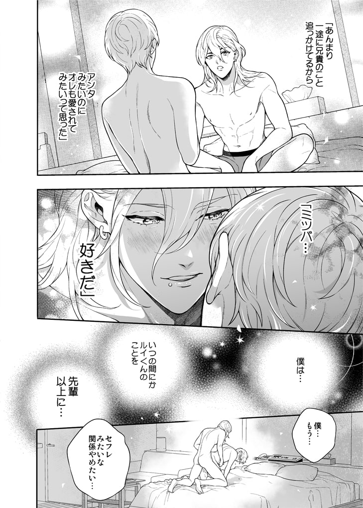 - 地味な大学生ミツバは片思いの先輩に告白するも玉砕。先輩から「俺の弟もゲイだから」と紹介され、その弟に男同士のセックスの手ほどきを受けることに。セフレ関係を続けたある日セックスの最中を先輩に見られてしまい、ルイに流されるまま付き合うフリを始めたミツバ。偽りの関係を続ける中でルイの自分への恋情を知り、次第にルイに心惹かれ始めるミツバは…!?シリーズ3作目!こちら単品でもお読み頂けます。