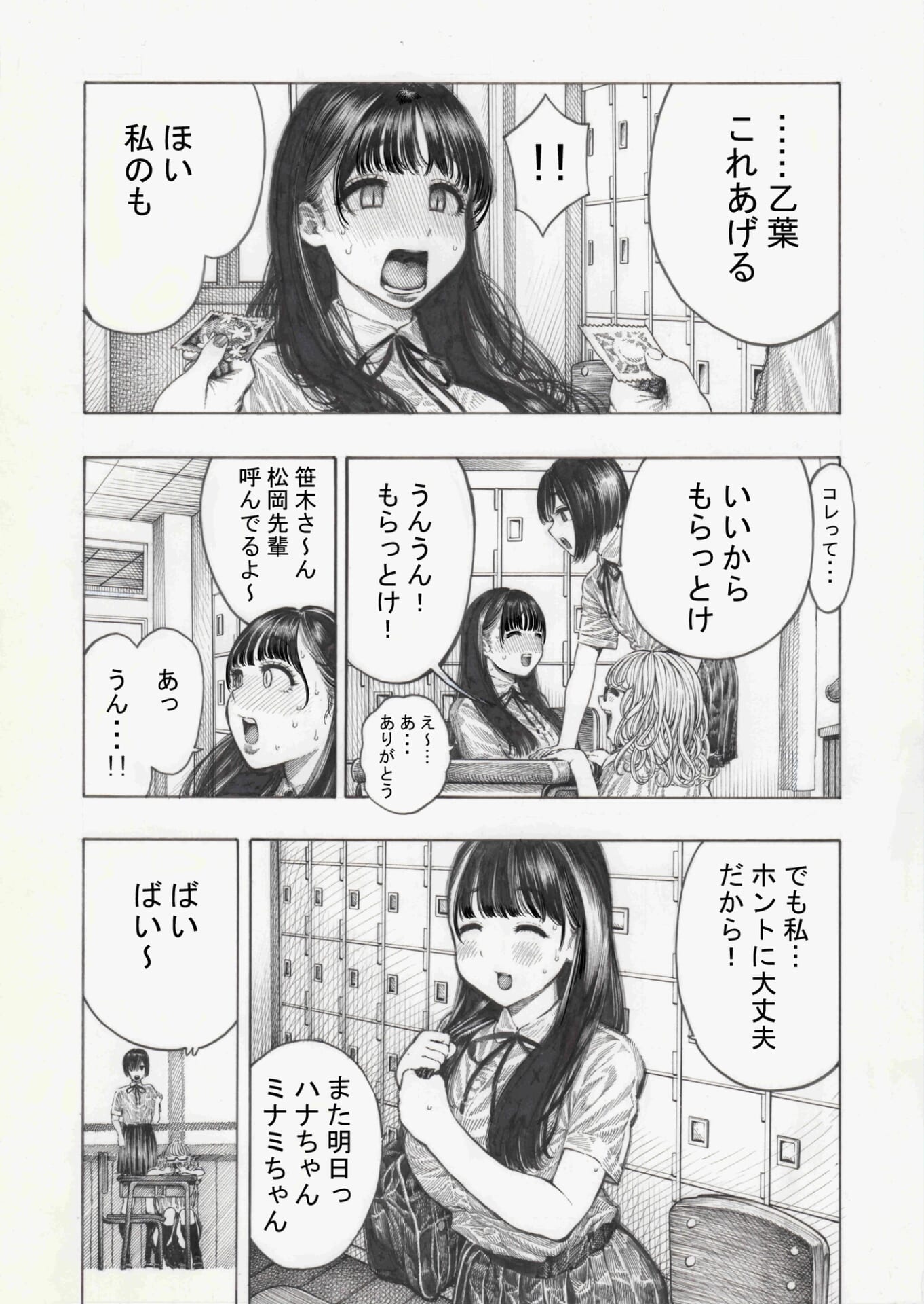 こちらの漫画は、2021年に快楽天で掲載していだたいた「幸せ乙葉ちゃん」のアナログ原稿を再スキャンし、絵の加筆修正、再編集した、「アナログ原稿版」となっております。
