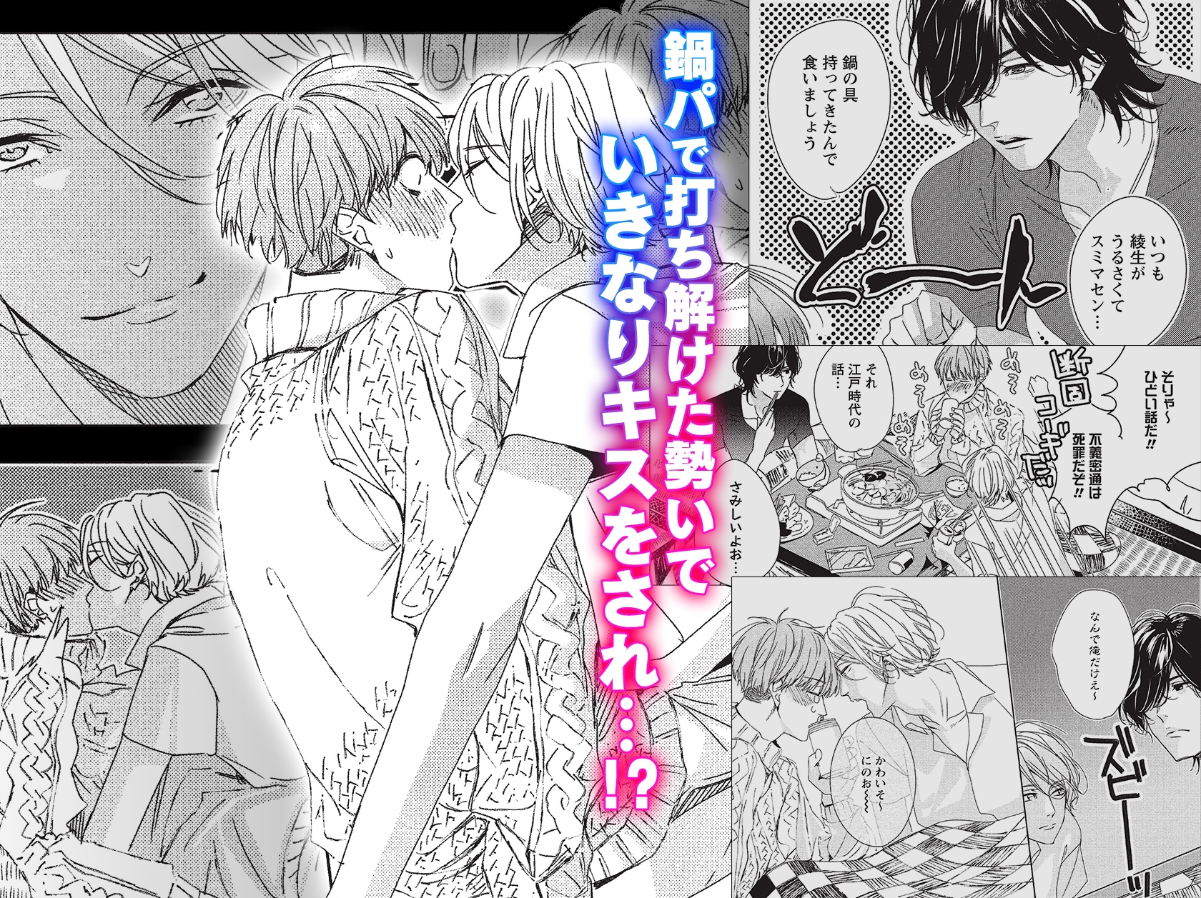 色々あって綾生(美人)&伶(男前)の隣人コンビに気に入られた愛は、打ち解けた流れでキスをされてしまう。