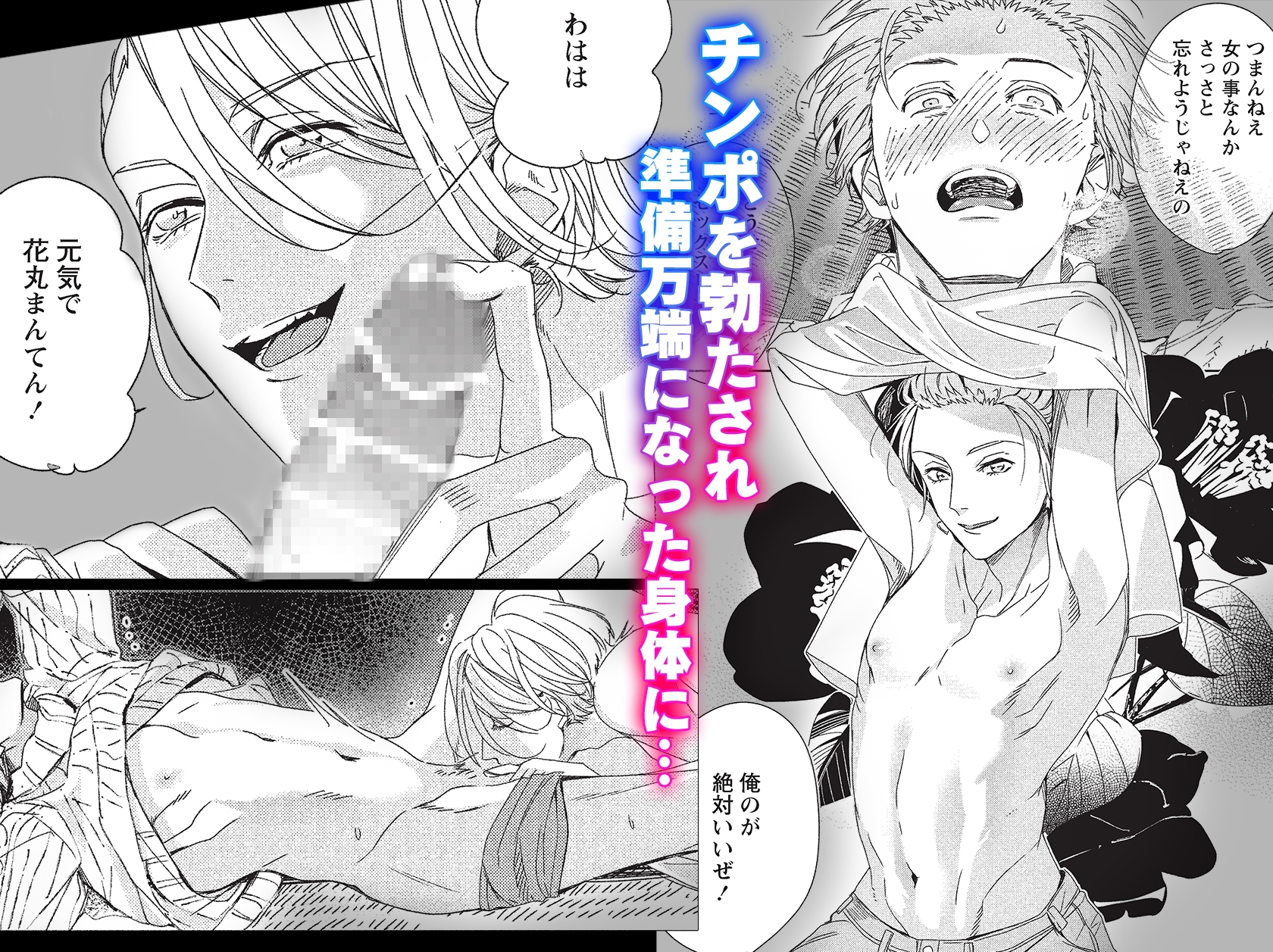 隣から聞こえてきた喘ぎ声はまさかの男同士のもので…打ち解けてしまった3人はなんとサンドイッチプレイをすることにwww【BL】