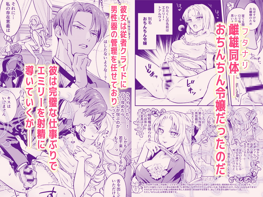 後天的フタナリ(雌雄同体)である伯爵令嬢エミリー・トアルヴォは、立派な相続人となるべく日々奮闘中。しかしエミリーには少々ポンコツなところがあり、男性器の扱いにいまだに慣れていなかった。下僕上がりの冷静沈着な従者クライドに管理を任せているが、この日はいつもの奉仕では物足りなくて…?