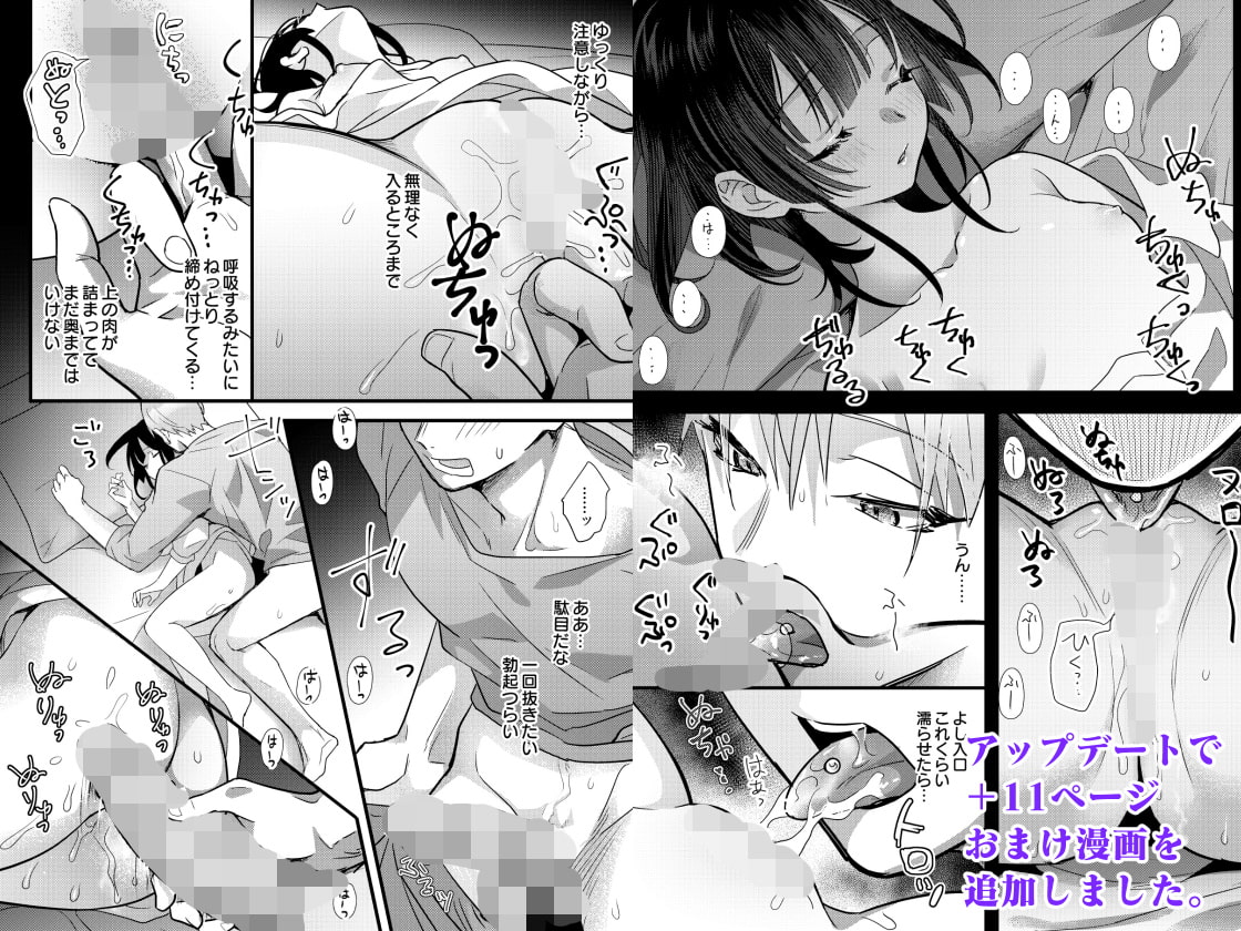 女性視点/男性視点、体格差、微乳、前戯、淫語、騎乗位素股、睡眠○(未遂)、