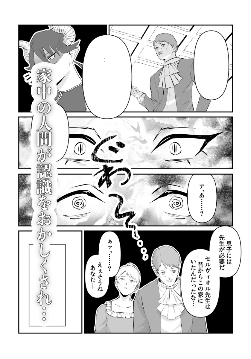 屋敷の人間たちの記憶と認識を歪めて家に入り込んだセルヴィオルは、ローワンの身体を“苗床”として作り替えていく。