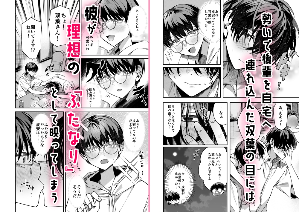 打ち上げで泥酔したところを介抱してくれた後輩・成安に見たのは、理想の「ふたなり」の姿だった――。