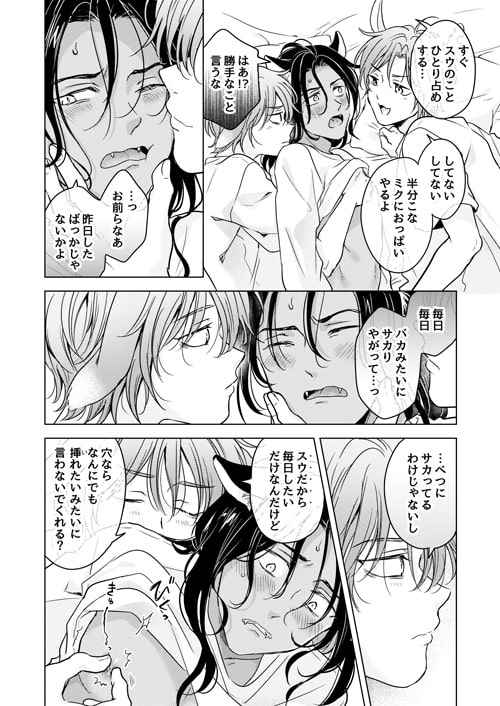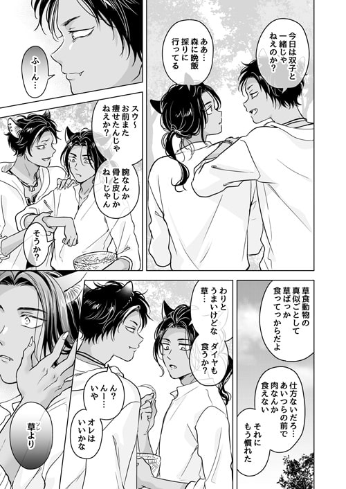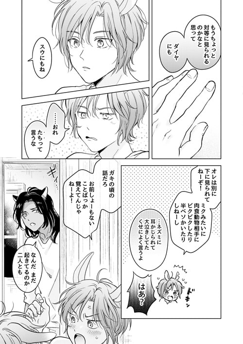 草食動物としての生活を続け肉と血の味を忘れ、爪や牙も役に立たなくなってしまったスウを、今度は自分たちが守ってやろうと思うシャオルとミクだが、いつまでも子供扱いしてくるスウに二人の想いは伝わらず…。