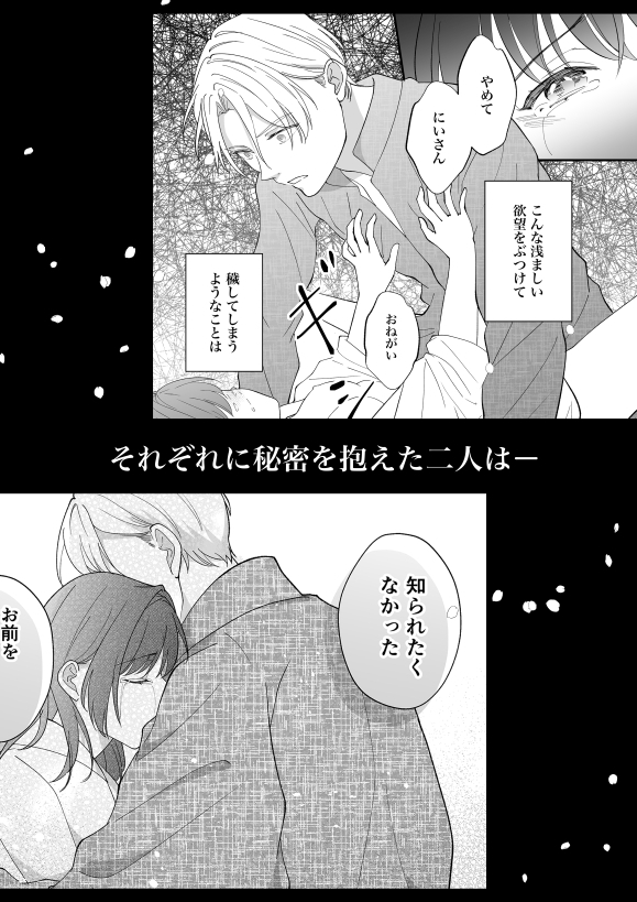 - 毎晩発情する呪いにかかった沙耶は夜ごと義兄の宗司に甘やかされ慰められる。お互いが秘めた真実が明かされた時二人は…。