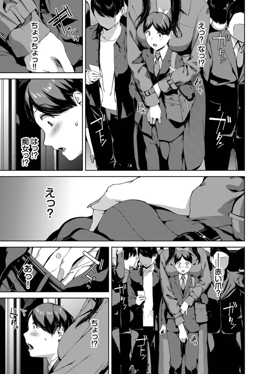帰りの満員電車の中、豊満な胸を後ろから押し付けられたサラリーマンは彼女にガッチリホールドされ電車の中で手コキされる…!?w