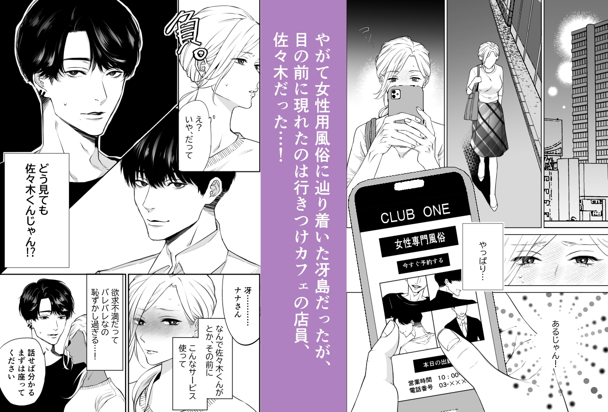 - 欲求不満のをこじらせ、初めての女性用風俗で呼んだセラピストが顔なじみのカフェ店員で、しかも凄腕テクニシャンな漫画です。