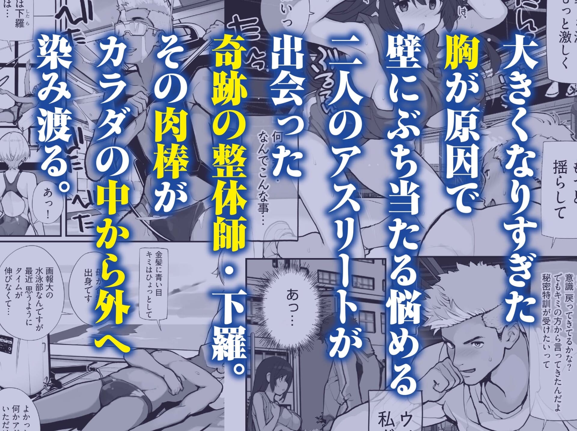 - 「自己ベスト更新のため…私、ヌキます!」将来を期待される女性アスリート最大の敵・成長!大きくなりすぎた胸が原因で壁にぶち当たる悩める二人のアスリートが出会った奇跡の整体師・下羅。その肉棒が「施術」の名の下にカラダの中から外へ染み渡るw 和月典子と紅月・M・カレンのWヒロインで贈る絶頂謎整体♡