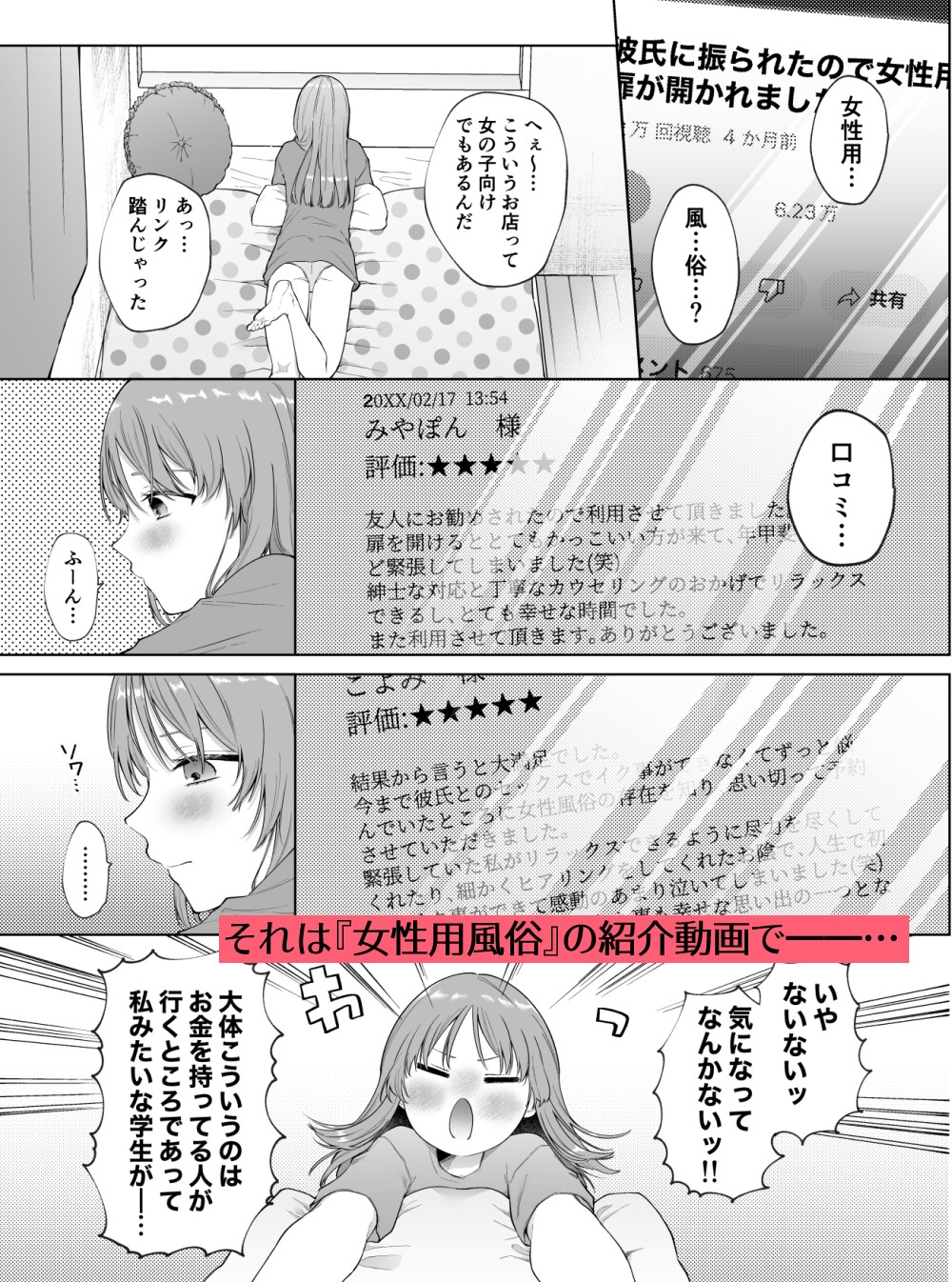 元彼言われた言葉がトラウマとなり、性行為を行う事に自信がないひなは、たまたま女性用風俗のサイトに辿り着く。