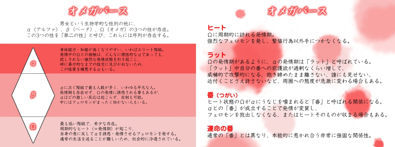 - 優しい樹くんも同じβだと思っているが、 彼は「ウチは代々、αで医者の家系です」と告白。 何度も確認した後、あなたは「αとΩは結ばれる運命」、「βの私はαの愛を受け入れることができない」とか言い出して、思い切って彼を拒絶。数日後、他のΩのヒートに影響された樹は、何とか意識を持ってあなたのもとに、しかし、まもなく彼は理性を維持できなくなる…